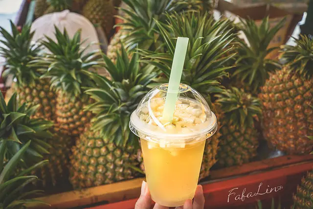 原產地通常是100%真實用料,尤其這杯才NT$30,不管怎樣都要買一杯來試試。上面還有一些鳳梨丁,喝起來甘甜、果味香濃,雖然粗吸管其實不太能把鳳梨丁吸起來,但是這杯真的很實在。