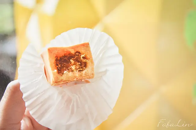 如果有吃過微熱山丘鳳梨酥的人便可以對這顆鳳梨酥的大小有個認識,尺寸形狀一樣。旺萊山鳳梨酥適合喜歡香甜味多的人,口味上沒那麼酸。