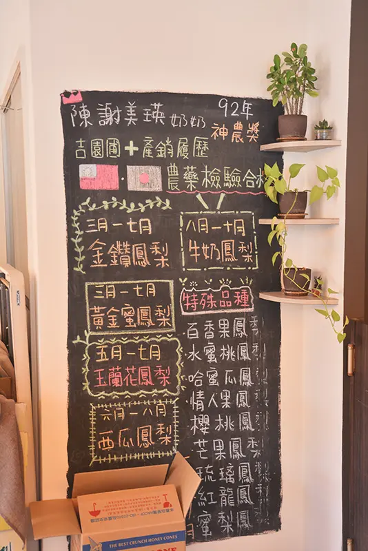 二樓販賣部,販售可直接飲用的清涼飲品,百分百鳳梨果汁 NT$45、鳳梨優酪乳 NT$40、鳳梨冰茶 NT$40、柳丁鳳梨 NT$40、甘蔗鳳梨 NT$40、鳳梨醋飲 NT$40、鳳梨酵素飲 NT$40、鳳梨冰沙 NT$30...等等,好奇旺萊山鳳梨醋的人,可以先來買一杯再決定要不要買玻璃瓶裝。