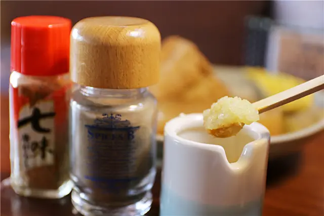 桌面上的蒜泥與調味粉可以自由來堪酎使用