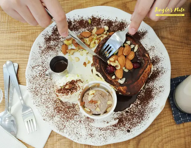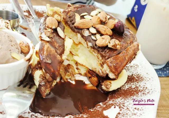 兩個人一起吃一份鬆餅比較適合,一個人吃可能到最後會有點膩