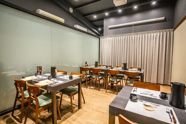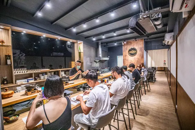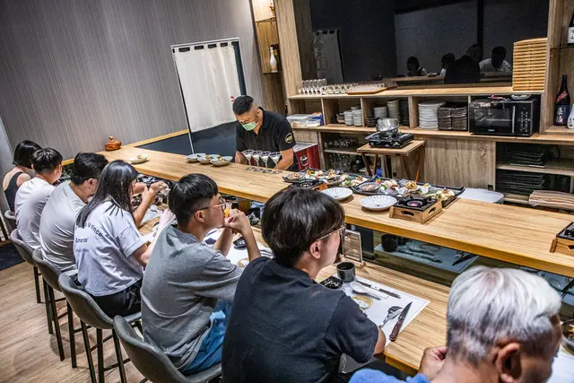 走進松匠板前料理,印入眼簾的是一整排板前用餐區,椅子的高度設計很不錯,可以看到師傅在板後的料理過程,用餐也不會不舒服,在後方還有具隱私感包廂的座位區,很適合家族或是公司聚餐
