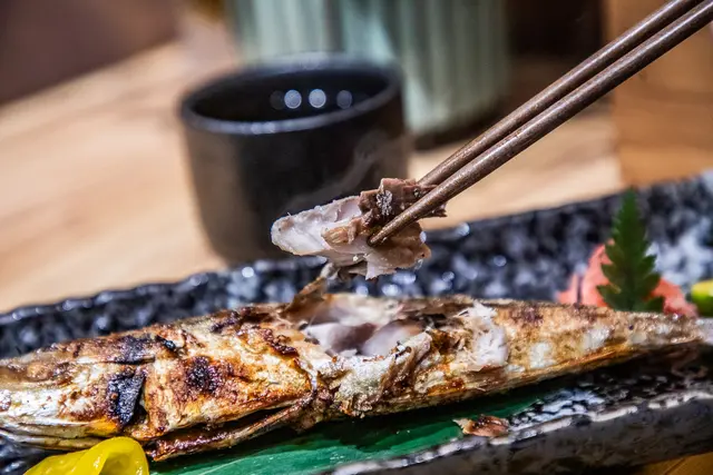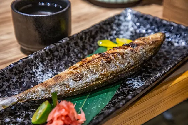 澎湖旬季野生魚直火燒,烤魚超大一尾!選用當季澎湖捕撈竹莢魚,簡單燒烤烤出漂亮的烤色,油汁香氣完全烤出,卻還能保持肉質的水嫩細緻,超讚!