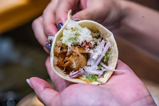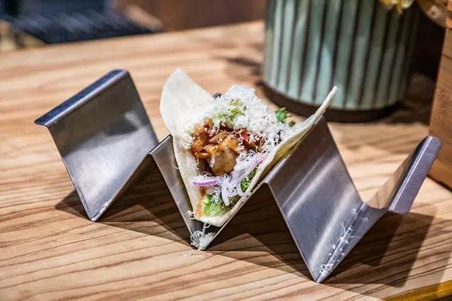 若島手羽元捲餅醬燒搭芭樂莎莎,有點異國料理的概念,外層是有點像墨西哥捲餅的餅皮,裡面是嫩嫩的雞肉跟清香酸甜的芭樂莎莎,口感清爽豐富,而且份量很多,一捲吃下去還蠻有飽足感的