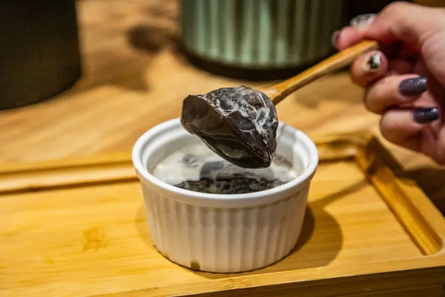 蜂蜜鮮奶油嫩仙草,裡面有加入蜂蜜,甜味相當高雅,仙草是比較紮實的口感,搭配滑潤鮮奶油,作為收尾最後一道,相當滿足