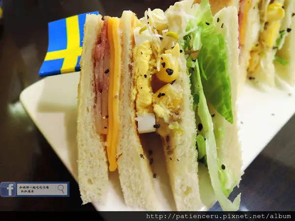 還有一個忘了名字的三明治,培根+起司+水煮蛋+玉米粒+生菜,再灑上黑胡椒,非常開胃!