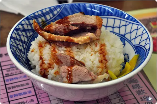 鴨肉飯-簡單的白飯淋上鴨油、醬油,配上鴨肉及醃漬蘿蔔