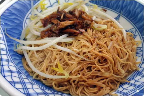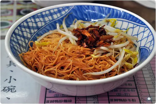 乾拌麵線-鴨油拌麵線,上頭加點油蔥和豆芽菜