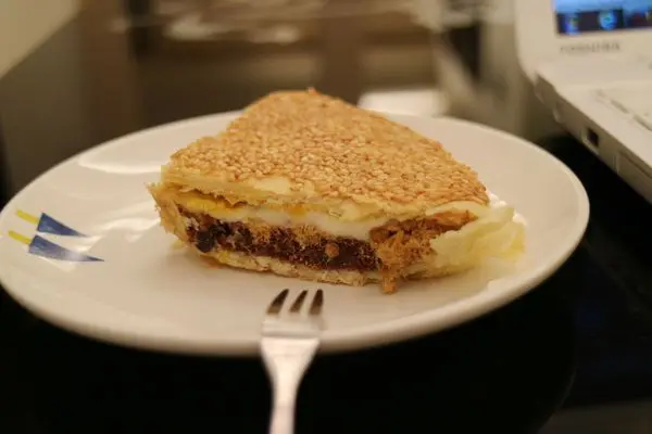 芝麻滿滿的撲滿整個大餅,即使切開也不輕易掉落