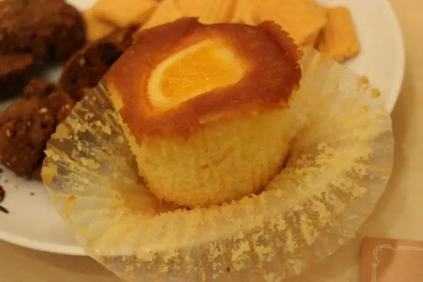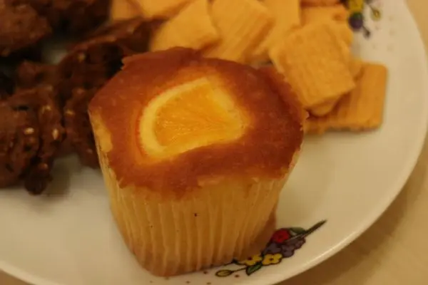 杯子型態的蛋糕出場,吸引人目光的是那上面小片的香橙片