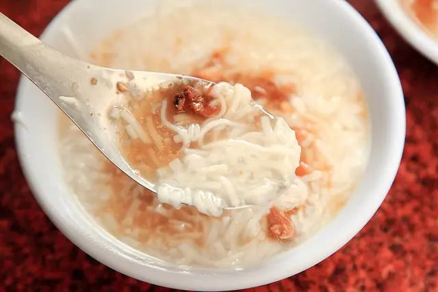 這麵線的湯頭是用大骨高湯下去熬煮,所以麵線的香氣會比一般麵線來的濃郁,濃稠度也恰到好處,粗粗的麵線吃起來相當滑順,再來就是獨門肉燥了,就是加了這肉燥讓整碗麵線鮮活了起來,醬香濃郁帶著豐厚的五花肉油脂,好吃!