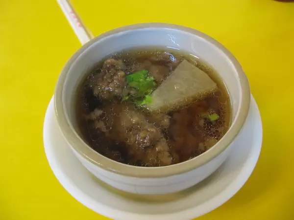 排骨湯原來就是排骨酥湯。裡頭的冬瓜燉得軟嫩。排骨肉多而帶嚼勁路線,有略醃過,雖非自己喜歡的輕咬即化路線,但也算是不錯。湯頭調味足而帶微甘,屬可接受走向。