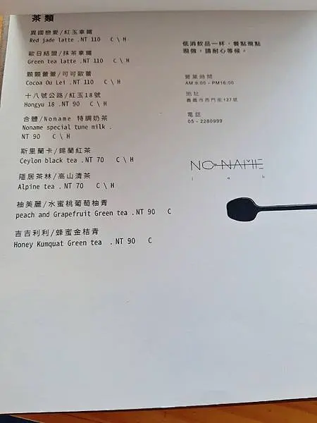 Nonamelab 菜單(拍攝日期:2020.09.20)