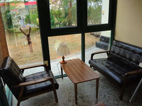 有提供戶外的坐椅、天氣好時不妨來外頭這邊透氣、呼吸一些 芬 多 精