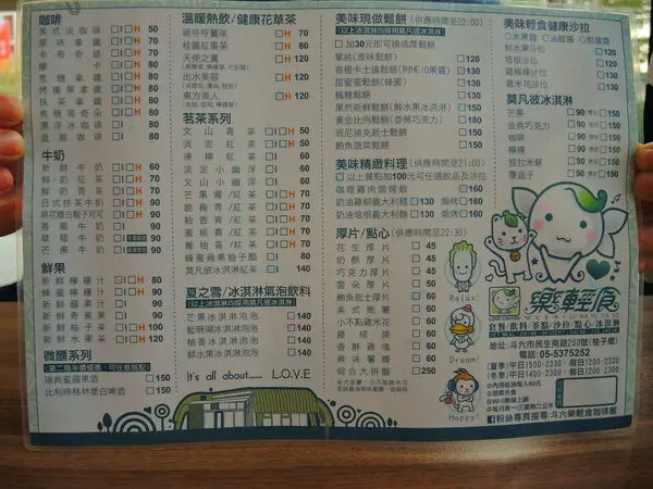 「樂輕食」的點餐單。種類繁多、飲品 與 點心、還有 主餐 喲!