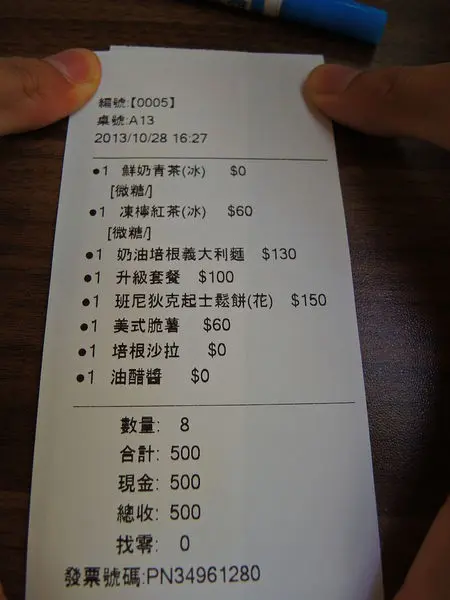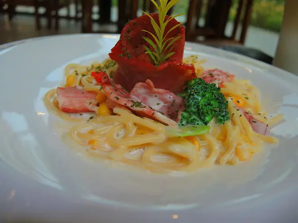 B 先生點的 「奶油培根義大利麵」 $ 130