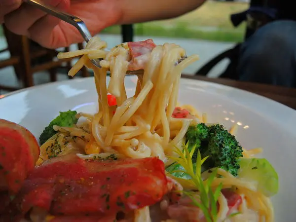 呼嚕下去既能吃到香濃奶油的滋味、又能嚼出 培根鹹香 的味道,搭配的天衣無縫啊!